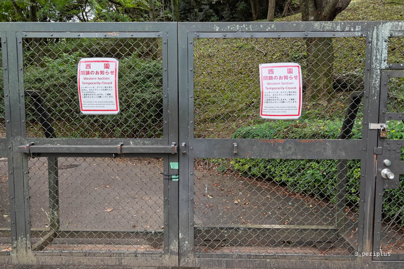 安佐動物公園は上述のとおり「丘陵地」に作られた動物園です。地図で見ると能登呂山と荒谷山の間の萩原峠という峠付近、山と山の間の鞍部に位置しています。つまり動物園周辺は山。山と言えば、昨今世間を騒がせる熊の住処です。安佐動物公園付近も熊の生息域らしく、現在は西園が閉鎖されていました。