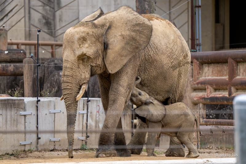 アオくんの母親のメイは、当初サバンナゾウとしてブルキナファソより来園。マルミミゾウと判明後、秋吉台サファリランドからオスのダイを借り受け、繁殖に取り組んだ結果、アオくんが誕生しました。