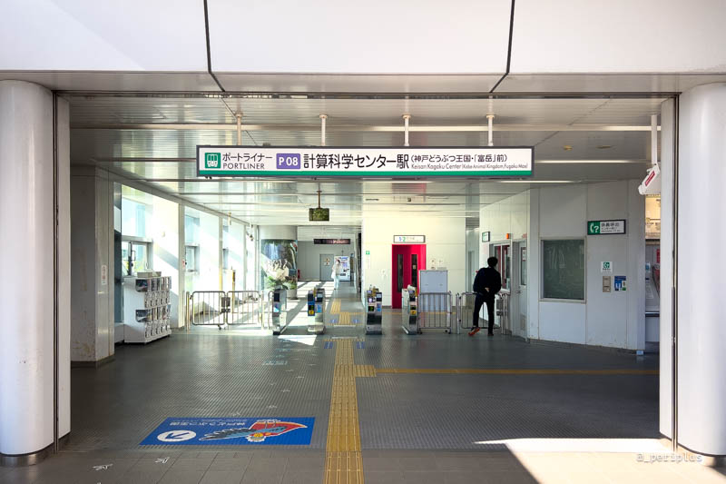 神戸どうぶつ王国があるのは、ポートライナー「計算科学センター駅」を下りてすぐ。三宮駅からの乗車時間は約15分。お隣は神戸空港です。ポートライナーも広島のアストラムラインと同じく新交通システムでしたね。